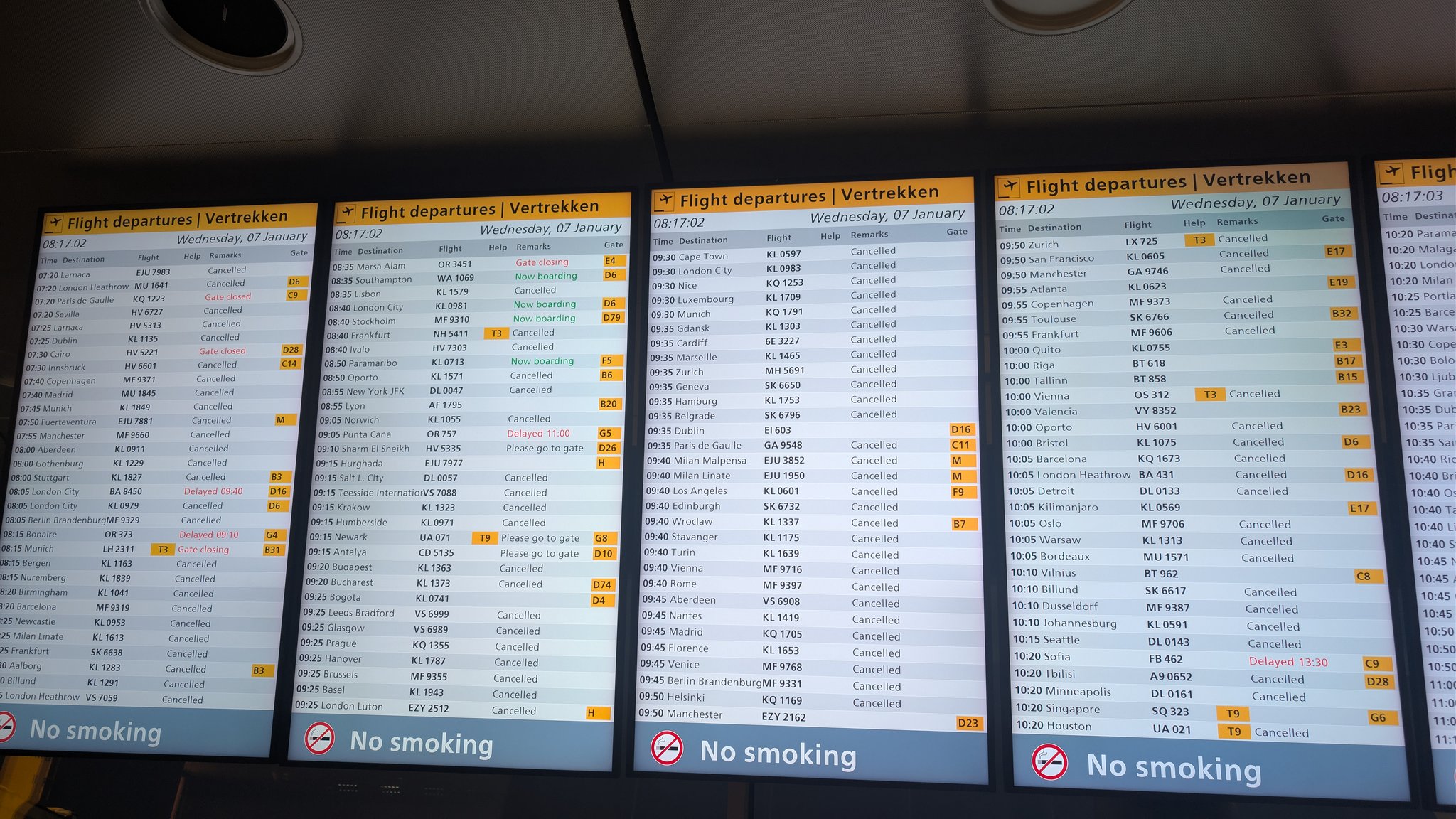 This year, Amsterdam Airport Schiphol cancelled around 3,200 flights between January 2 and January 7, 2026.